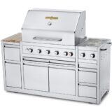 - Gas grill constructed of 304 stainless steel including grids, burners and all fasteners